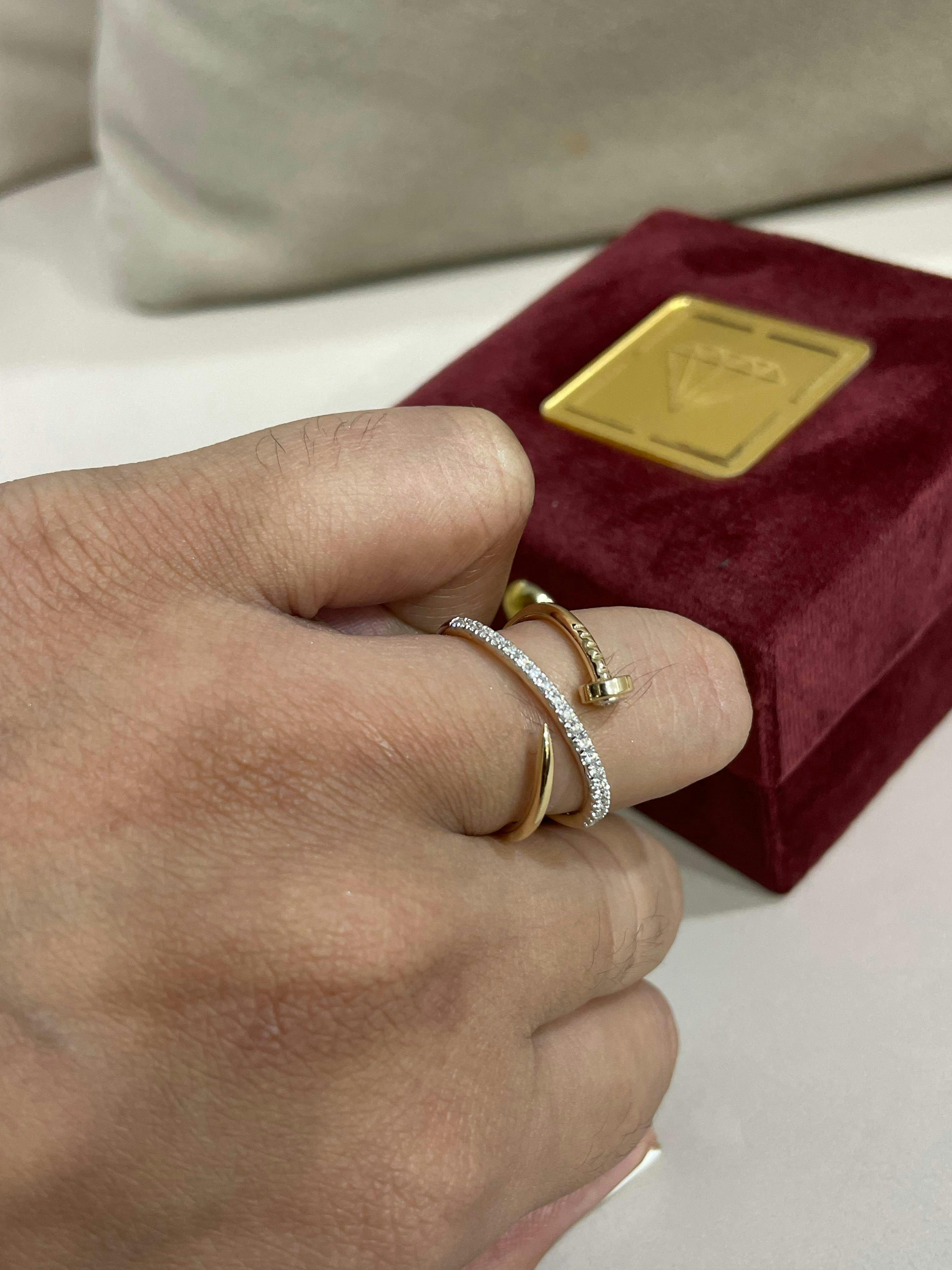 A sophisticated blend of contemporary design and timeless sparkle, this wrap-style ring showcases a dazzling round brilliant-cut diamond, meticulously set to capture and reflect light from every angle. Crafted with precision and finesse, it is the perfect statement piece for daily elegance or meaningful gifting.